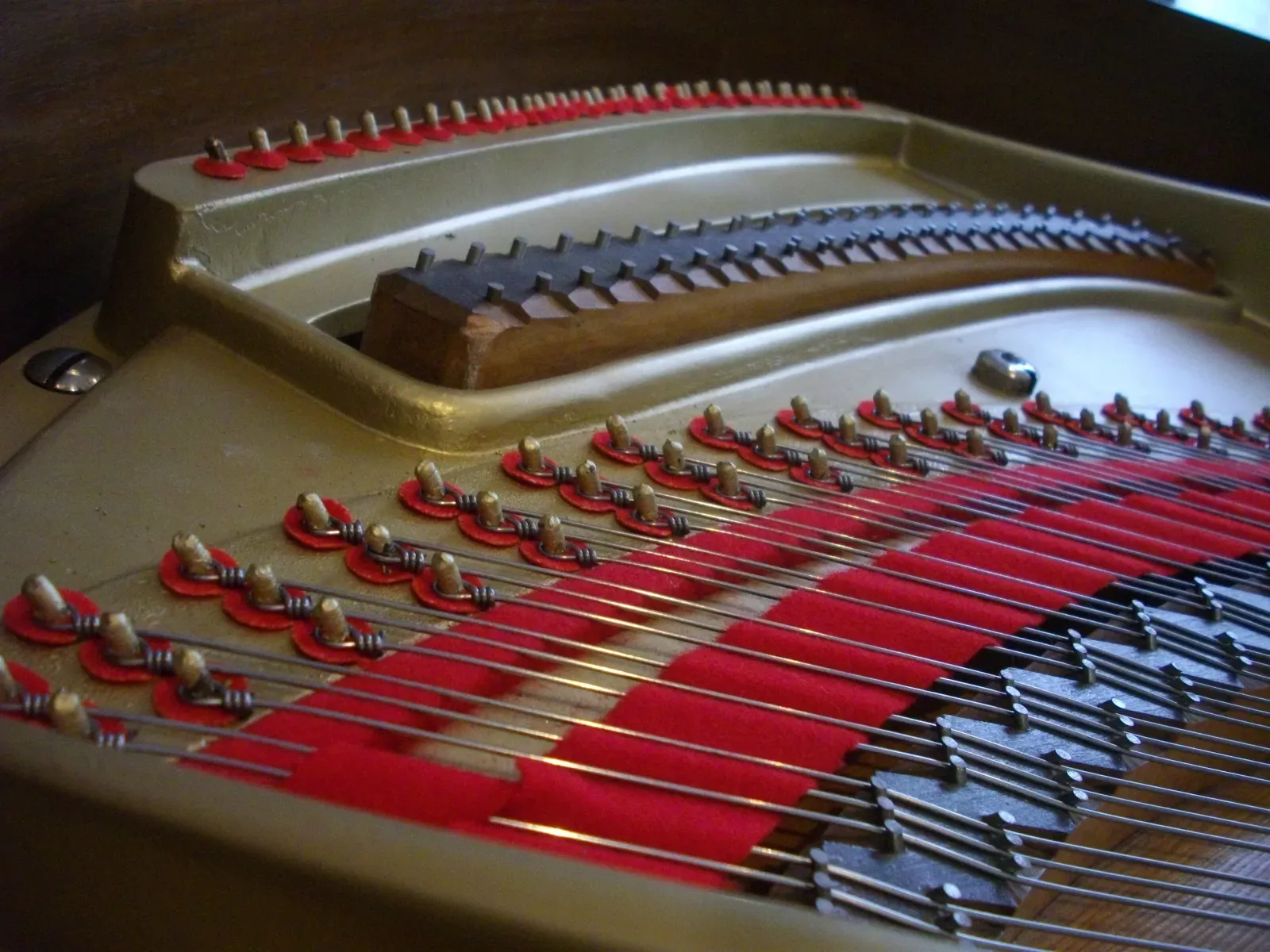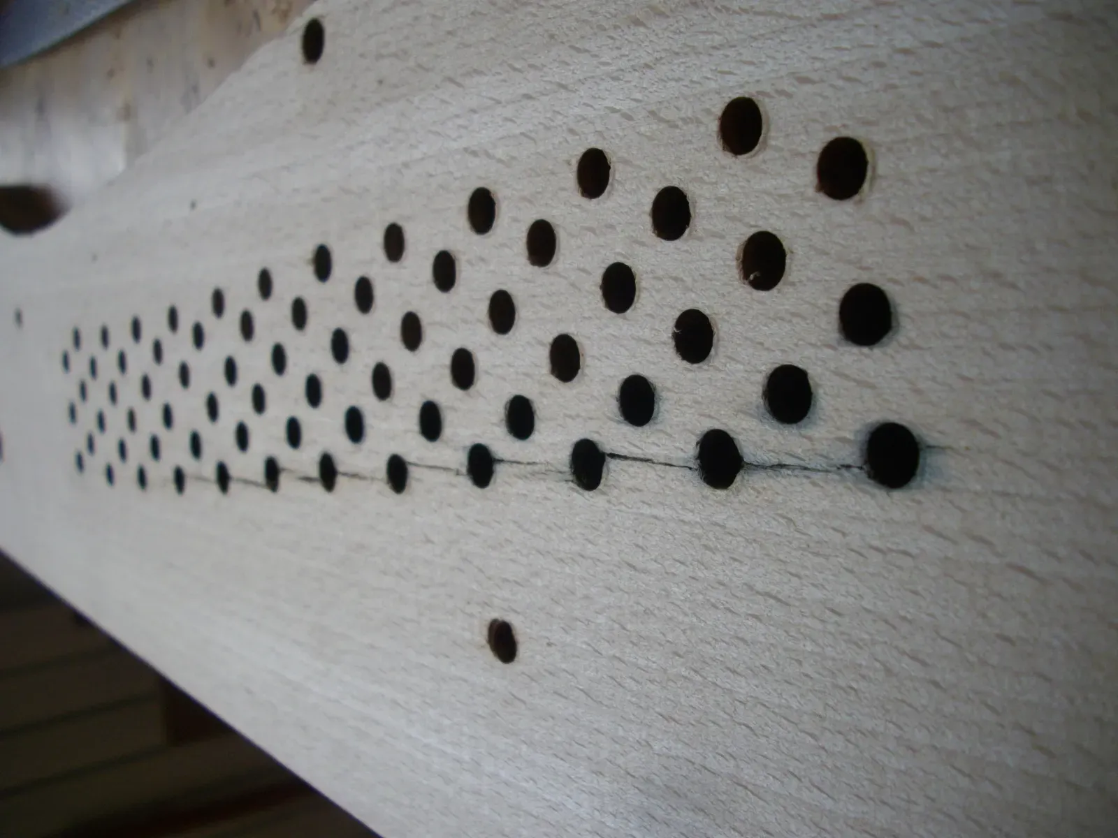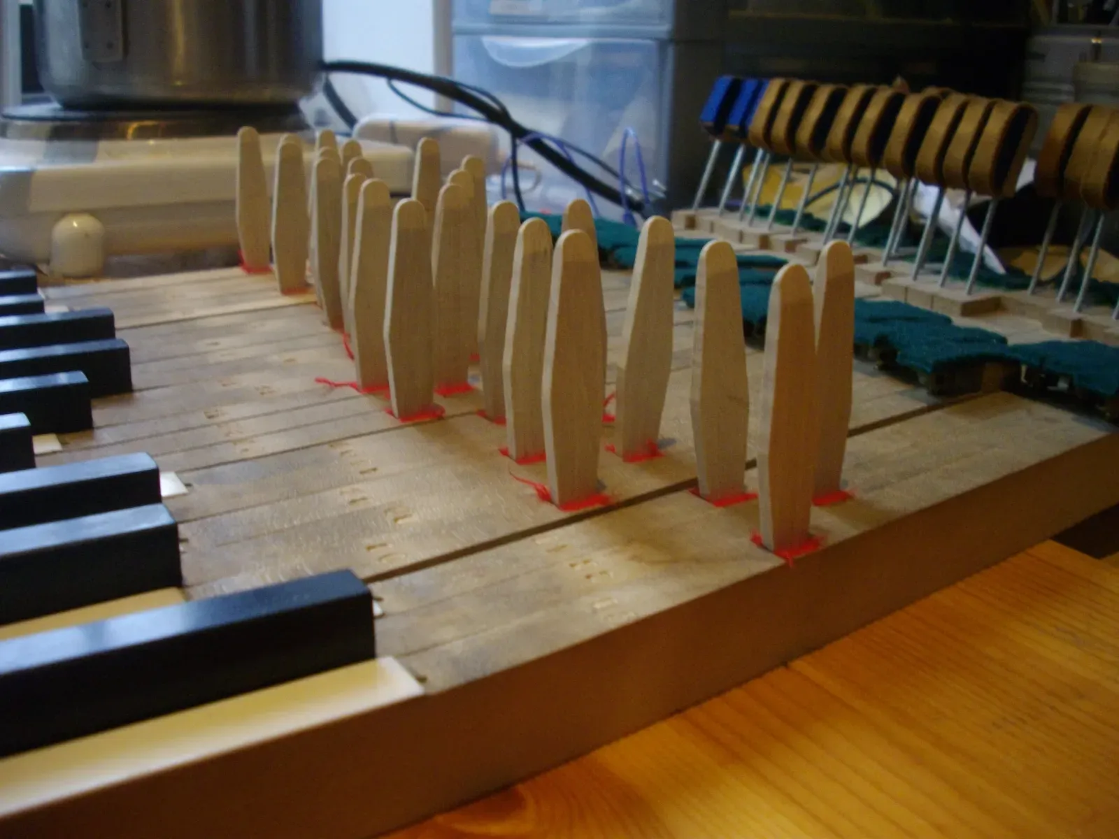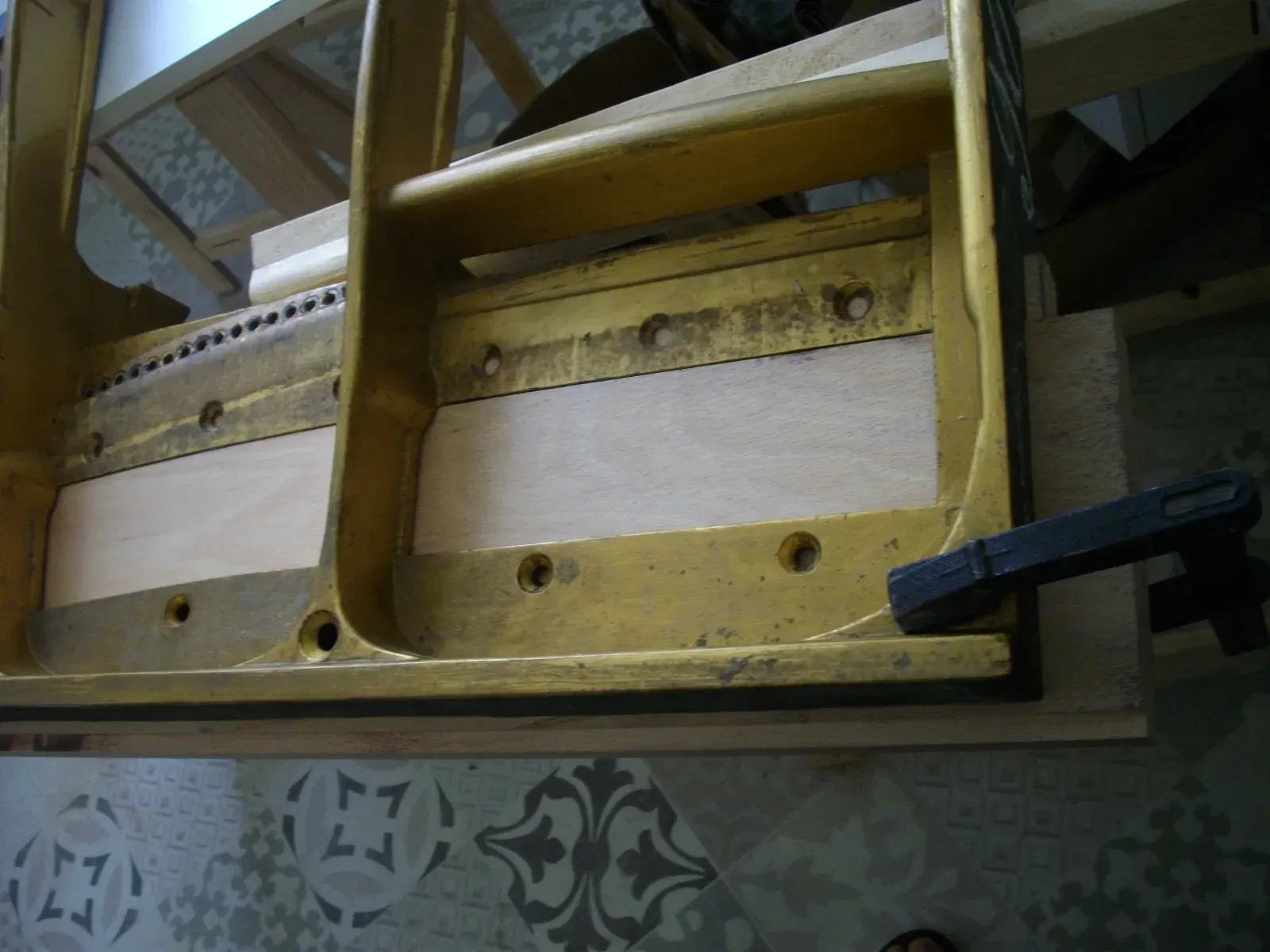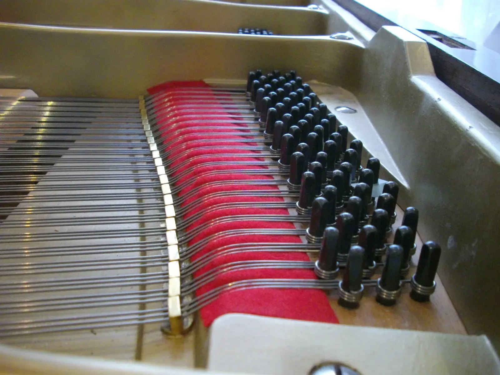 Parfait exemple d'une restauration complète, qui comprend ici le remplacement du sommier de chevilles, souvent fendu avec l'âge et qui ne permet plus la tenue d'accord. Travail invasif et conséquent mais qui assure à l'instrument à nouveau un siècle de durabilité !