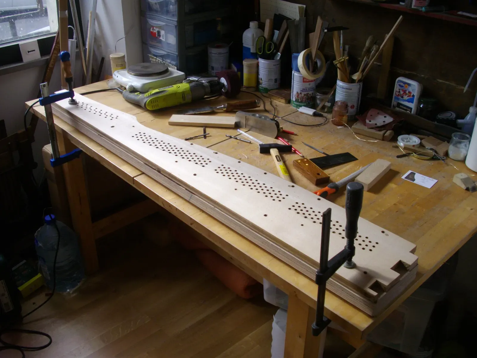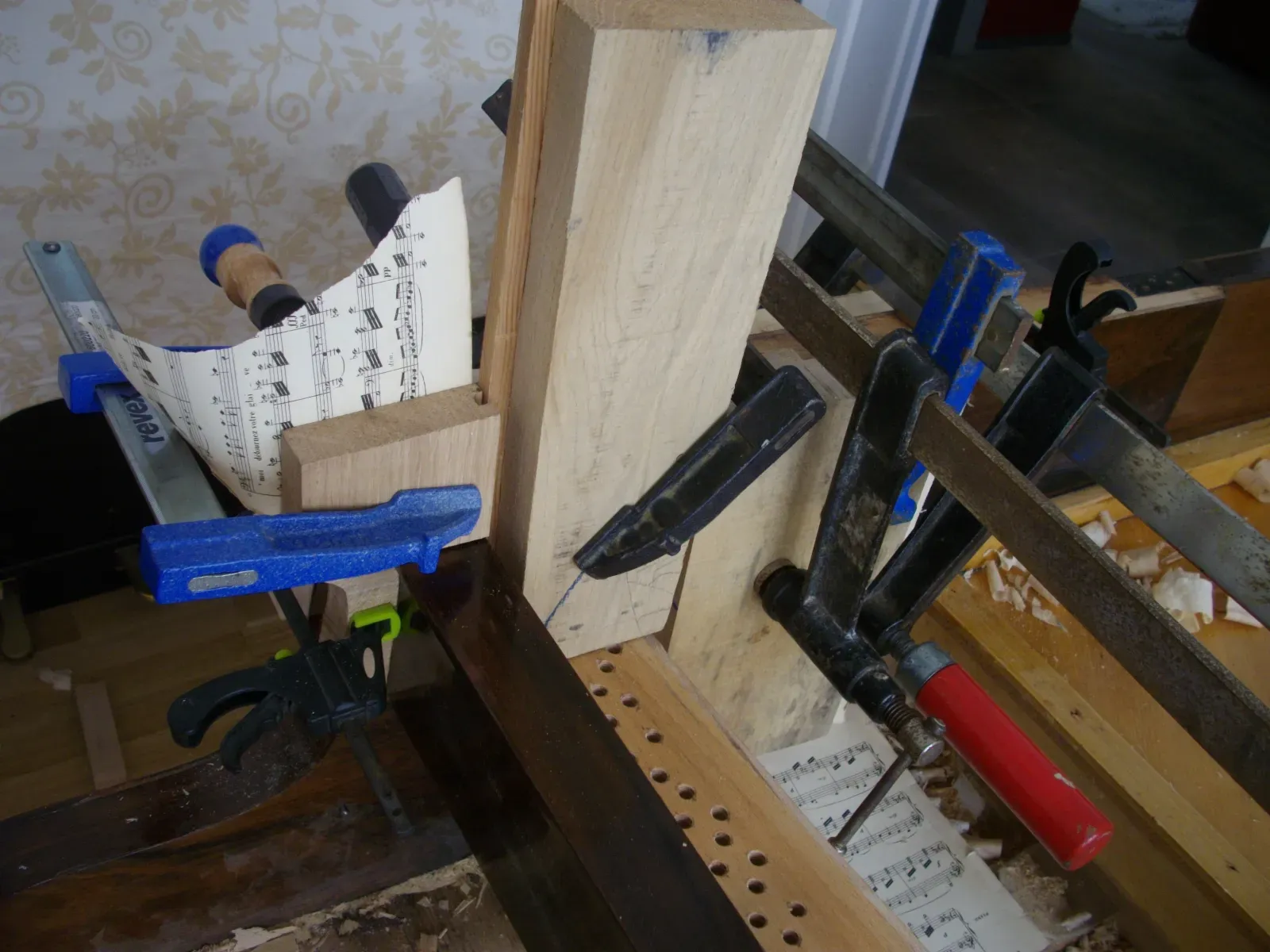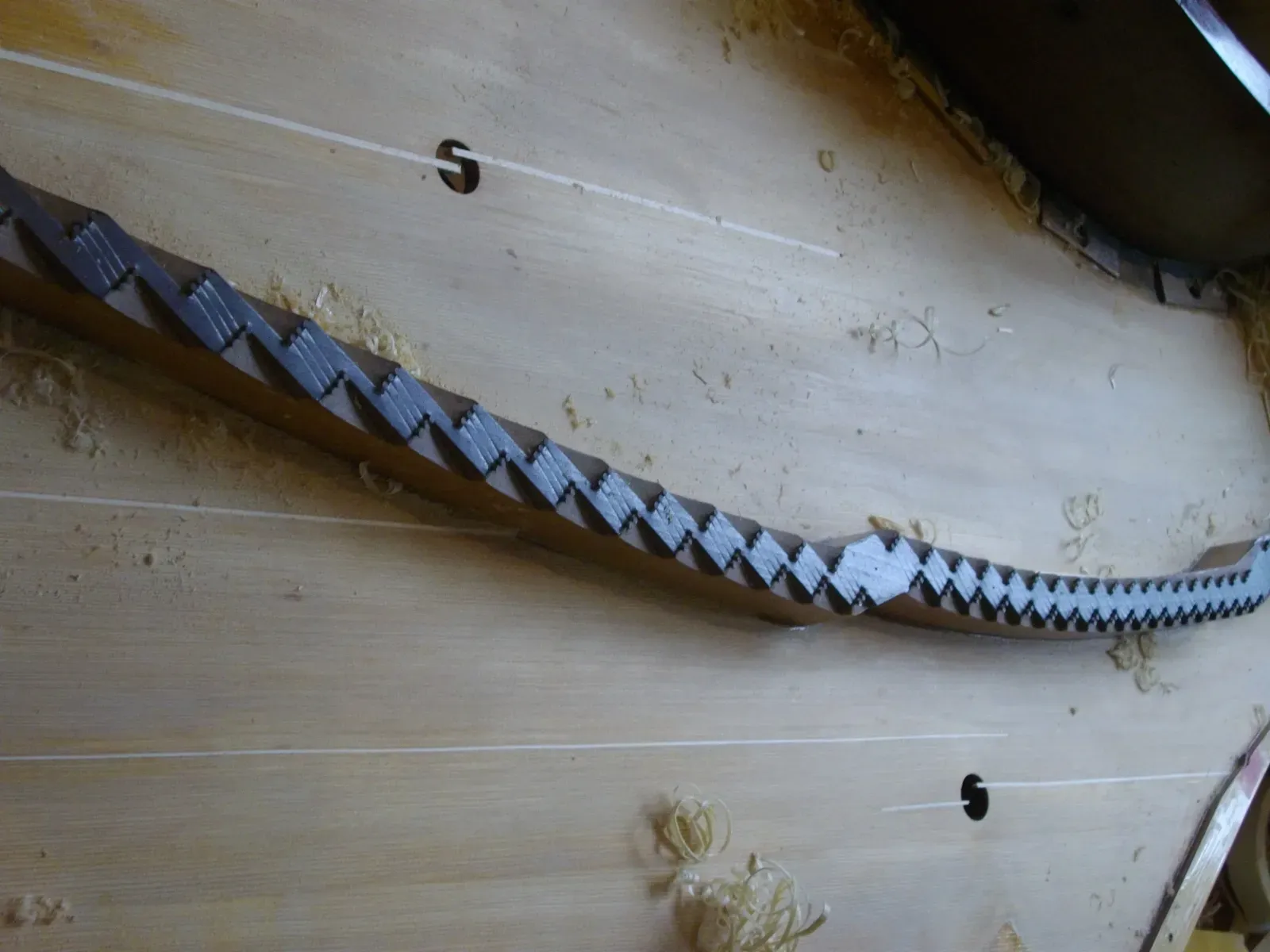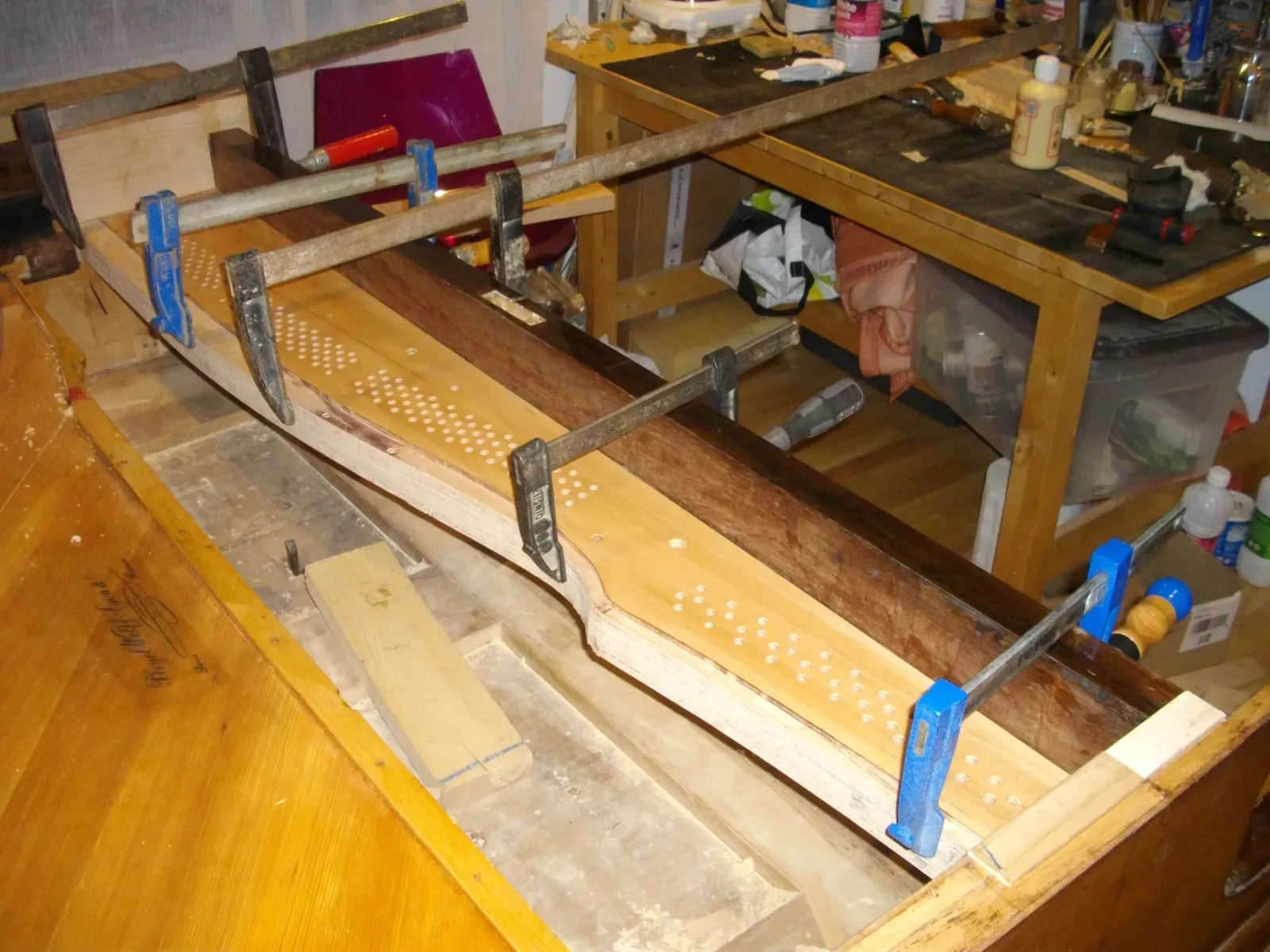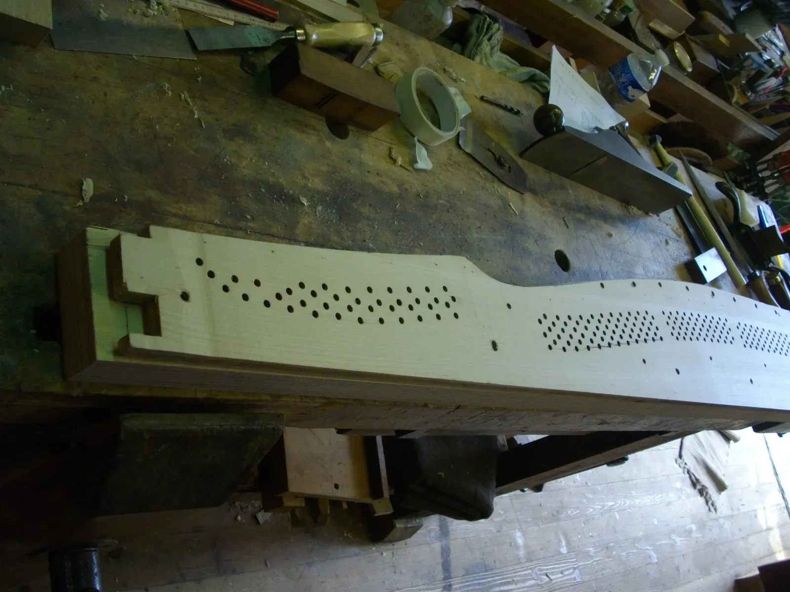 Parfait exemple d'une restauration complète, qui comprend ici le remplacement du sommier de chevilles, souvent fendu avec l'âge et qui ne permet plus la tenue d'accord. Travail invasif et conséquent mais qui assure à l'instrument à nouveau un siècle de durabilité !